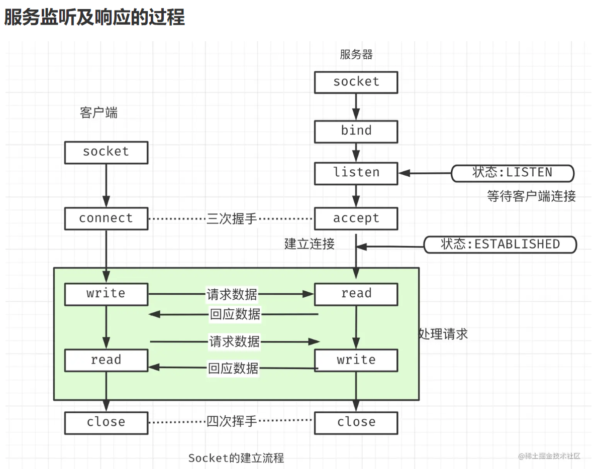 服务器监听及响应的过程
